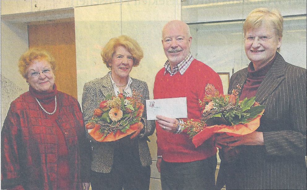 Spendenübergabe beim Bridge-Club: (von links) Doris Meyer, Irmgard Ruge, Bill Mockridge und Christel Herrmann. FOTO : Friese